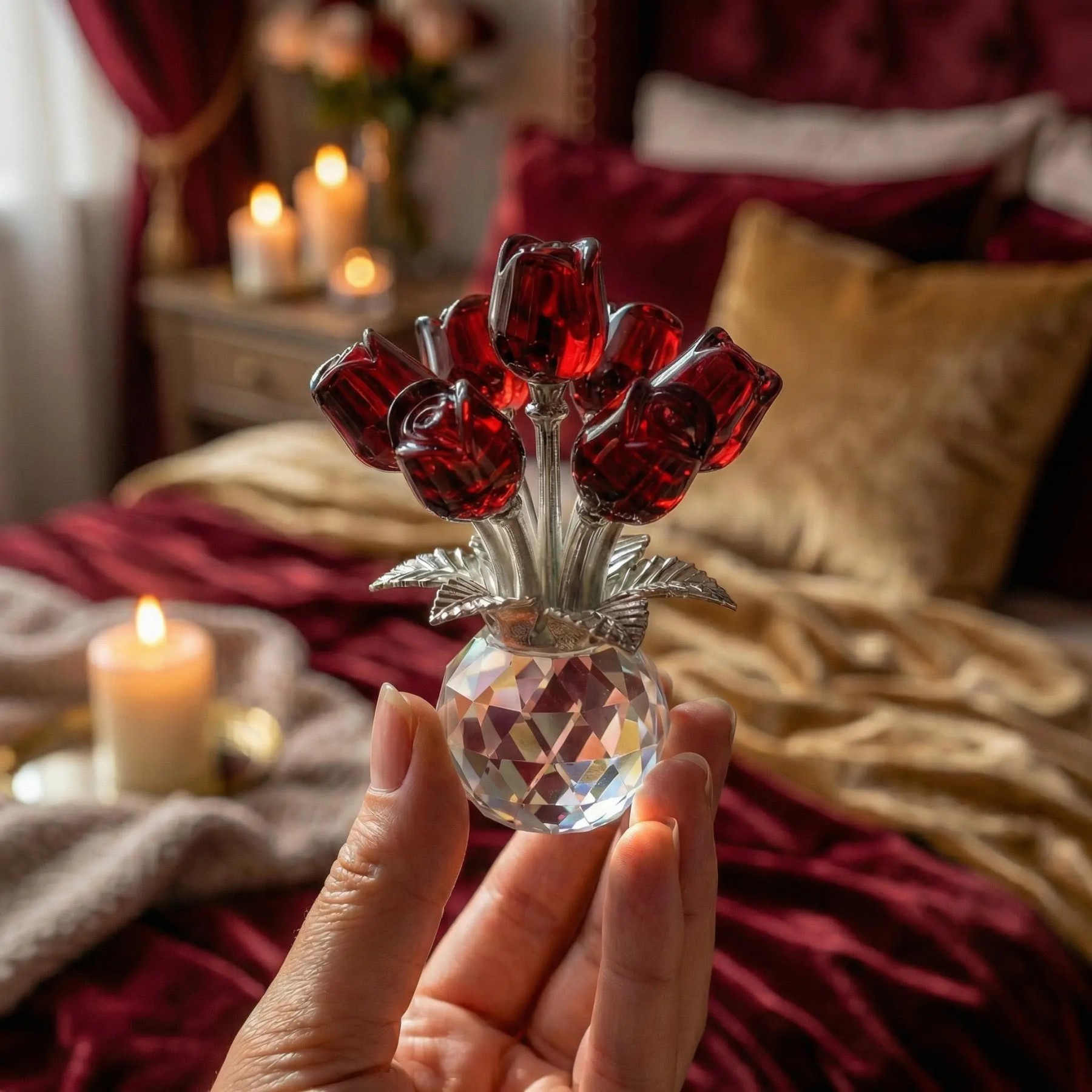 Crystal Glass Rose Bouquet Gift for Mom Grandma Mother's Day Gift Ideas