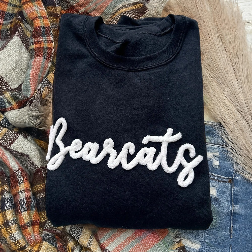 Custom Chenille Embroidered Team Sport Sweatshirt with Game Day Fuzzy Letter Unique Gift for Game Day