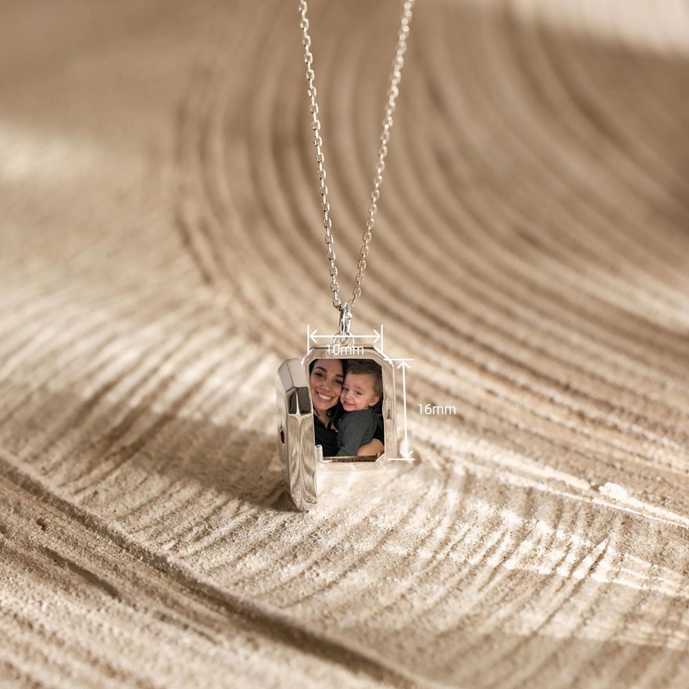 This custom locket necklace is designed to treasure your most precious memories. Featuring a minimalist rectangular pendant with a shimmering birthstone at the center, it beautifully combines elegance with deep personal meaning — a timeless piece you can carry close every day.