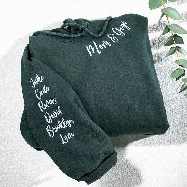Custom Gigi Embroidered Sweatshirt Hoodie With Names On The Sleeve Gift For Mom Grandma Mother's Day Gift Ideas