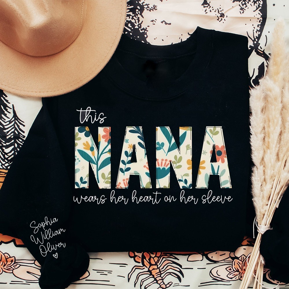 Custom Nana Embroidered Sweatshirt Hoodie with kids Names On The Sleeve Mother's Day Gift