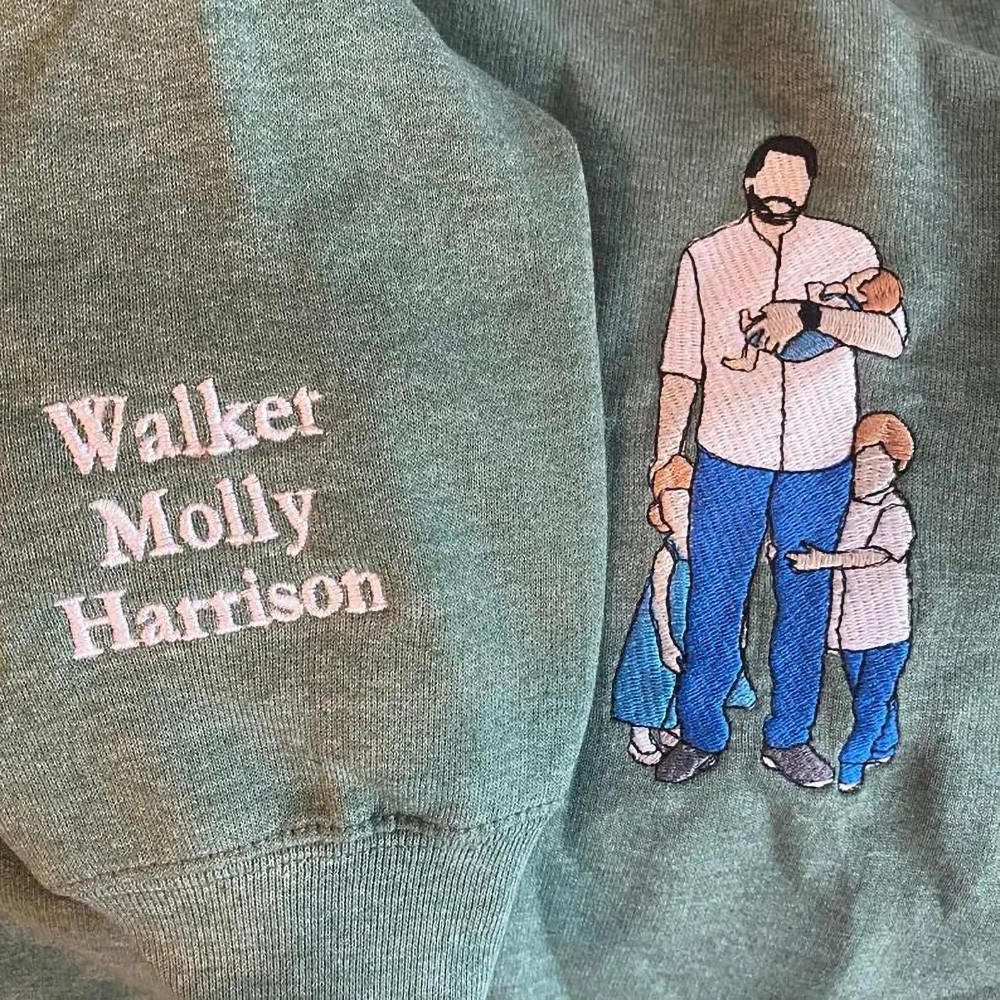 Dad Embroidered Photo Portrait Sweatshirt with Kids Names on Sleeve Custom Gift for Dad Father's Day Gift