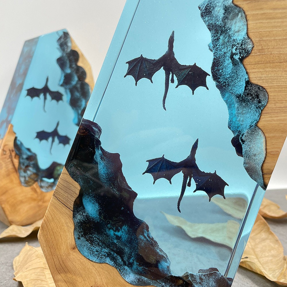 Dieses Nachtlicht aus Kunstharz bietet den magischen Anblick eines Drachens, der durch den Himmel fliegt. Seine Schönheit liegt nicht nur in den exquisiten Details, sondern auch in der verträumten Atmosphäre, die es erzeugt. Die aus Epoxidharz gefertigten Drachen reflektieren das Licht zart und erzeugen einen schimmernden Effekt, der hellen Sternen am Nachthimmel ähnelt. Dieses Licht ist nicht nur ein dekoratives Stück, sondern auch ein Kunstwerk, das Wärme und Stil in Ihren Wohnraum bringt.