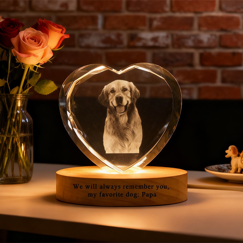 Personalized 3D Crystal Pet Photo Portrait Night Light with Base New Mom Gift Christmas Gifts
