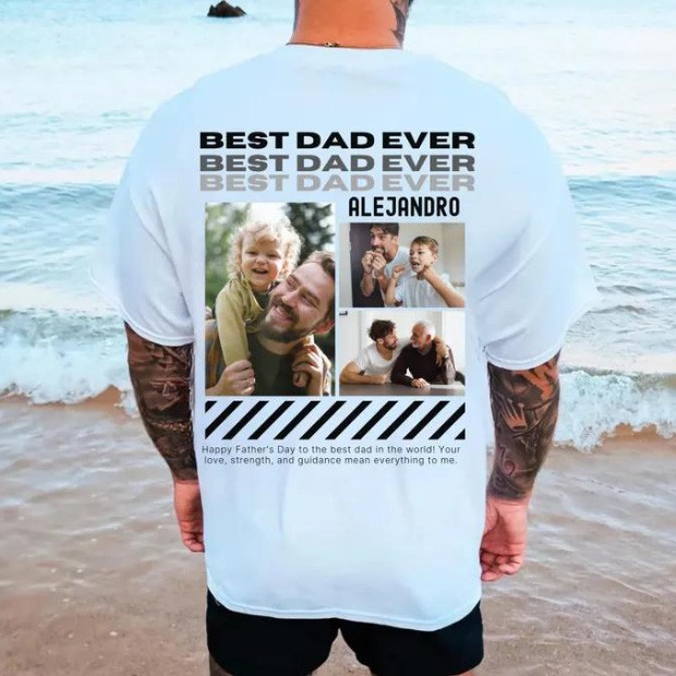 Personalized BEST DAD EVER T-Shirt Sweatshirt with Photos Unique Gifts for Dad Papa Father's Day Gift