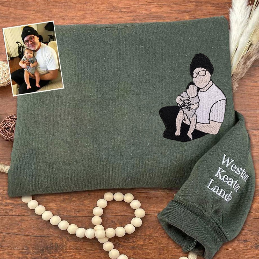 Personalized Dad Embroidered Photo Portrait Sweatshirt with Kids Names on Sleeve Unique Gifts for Dad Father's Day Gift