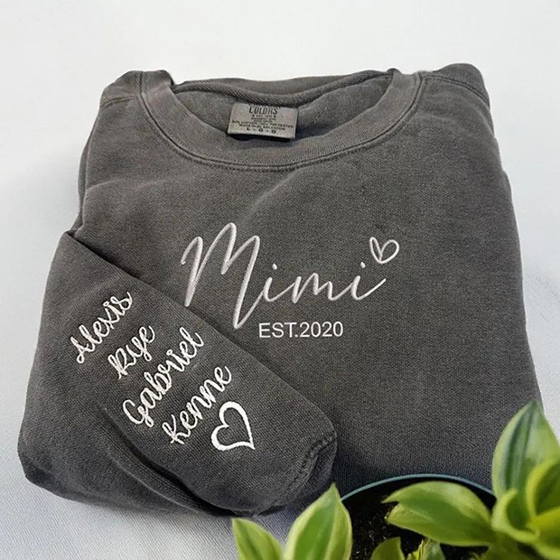 Personalized Embroidered Grandma Sweatshirt with Kids Names on Sleeve For Mom Grandma Mother's Day Gift Ideas