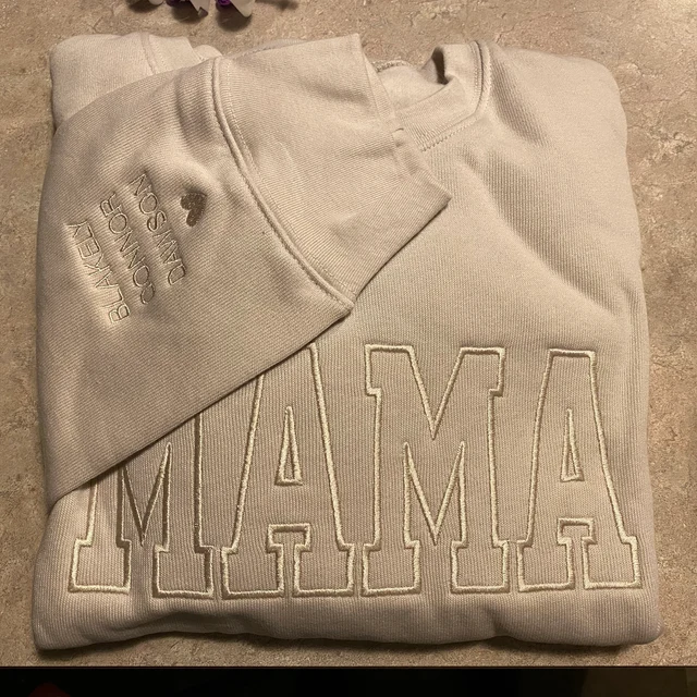 Introducing our Personalized Embroidered Mama Sweatshirt Hoodie, a heartfelt Mother's Day gift idea that celebrates the special bond between Mom and her children. Customized with the names of her kids beautifully embroidered, this cozy hoodie adds a personal touch to Mom's wardrobe. Crafted with care and comfort in mind, it's perfect for everyday wear. Give Mom a gift that speaks to her heart with our personalized embroidered sweatshirt hoodie.