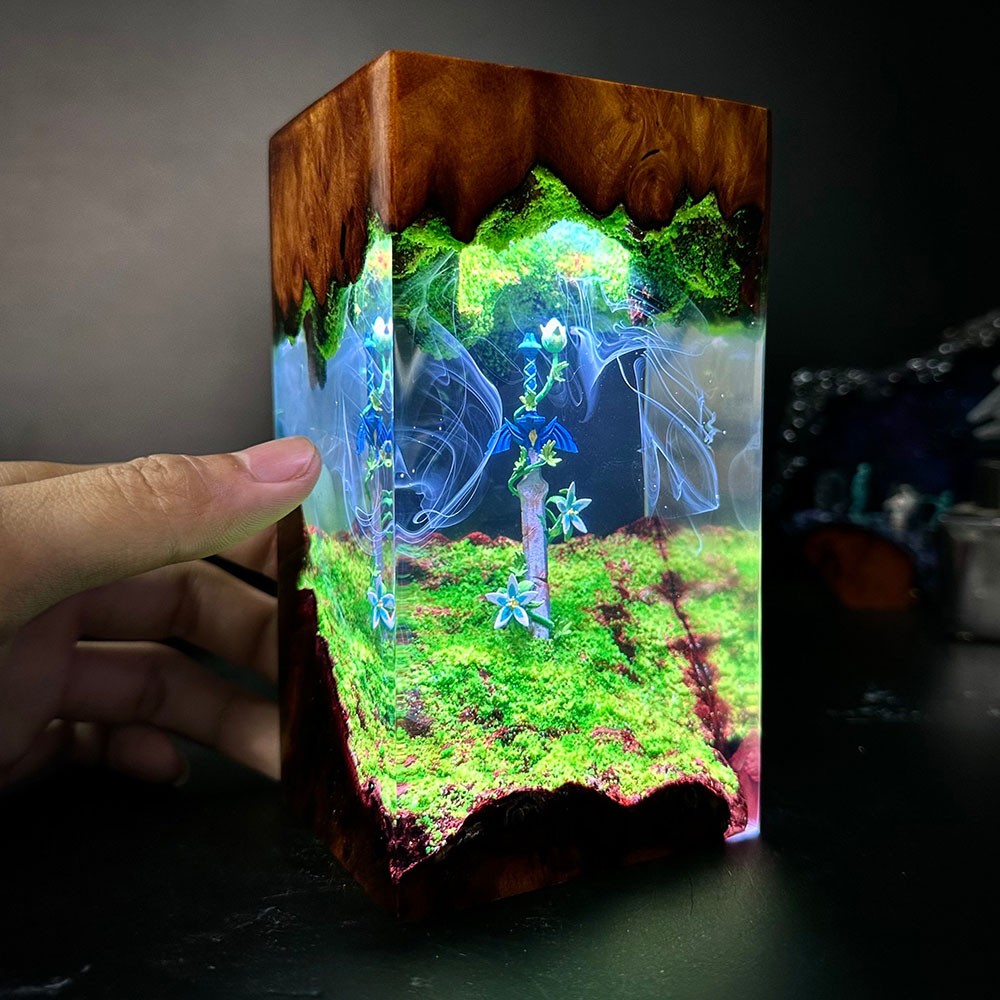 Tauchen Sie ein in eine Welt der Verzauberung mit unserem sorgfältig handgefertigten Nachtlicht aus Kunstharz. Dieses aus hochwertigem Kunstharz und edlem Walnussholz gefertigte Stück strahlt sowohl natürliche Schönheit als auch komplexe Kunstfertigkeit aus. Egal, ob Sie ein leidenschaftlicher Gamer, ein Liebhaber einzigartiger Dekore oder beides sind, diese Kreation verspricht, ein fesselnder Mittelpunkt in Ihrem Raum zu sein. Erhellen Sie Ihre Abende mit einem Hauch von Fantasie und Wunder.
