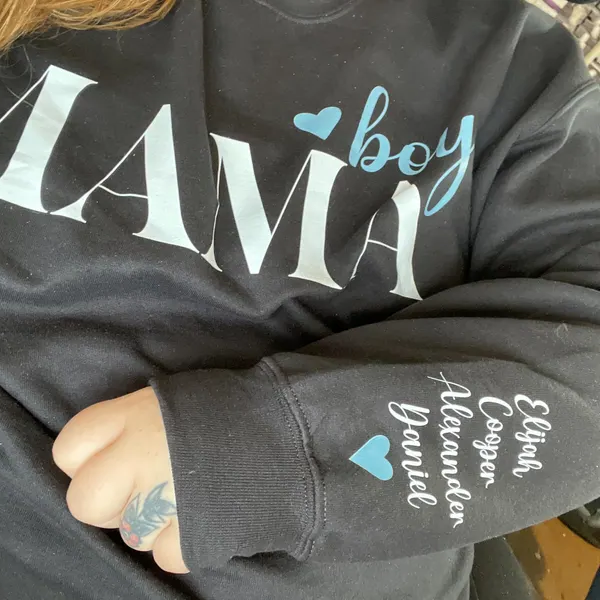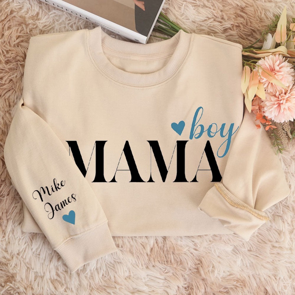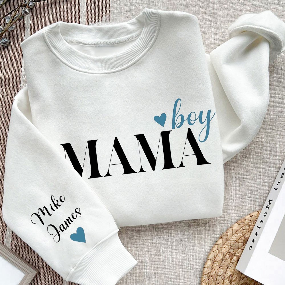 Custom Boy Mama Sweatshirt with Kids Names on Sleeve Momma Birthday Gifts New Mom Gift Unique Mother's Day Gift