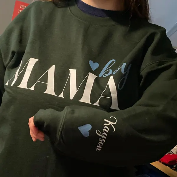 Custom embroidered mama sweatshirt. Personalized Mom Sweatshirt With Kids Names on the Sleeve. These make a great gift for mom, grandma gift, or new mom gift, or save them for a perfect Mother's Day, Christmas gift!