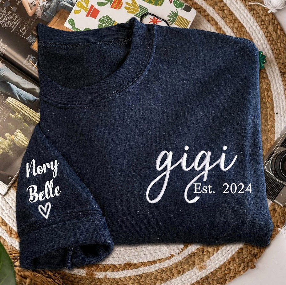 Custom Embroidered Gigi Sweatshirt with Kids Names on Sleeve Keepsake Gifts for Gigi New Mom Gift Mother's Day Gift Ideas