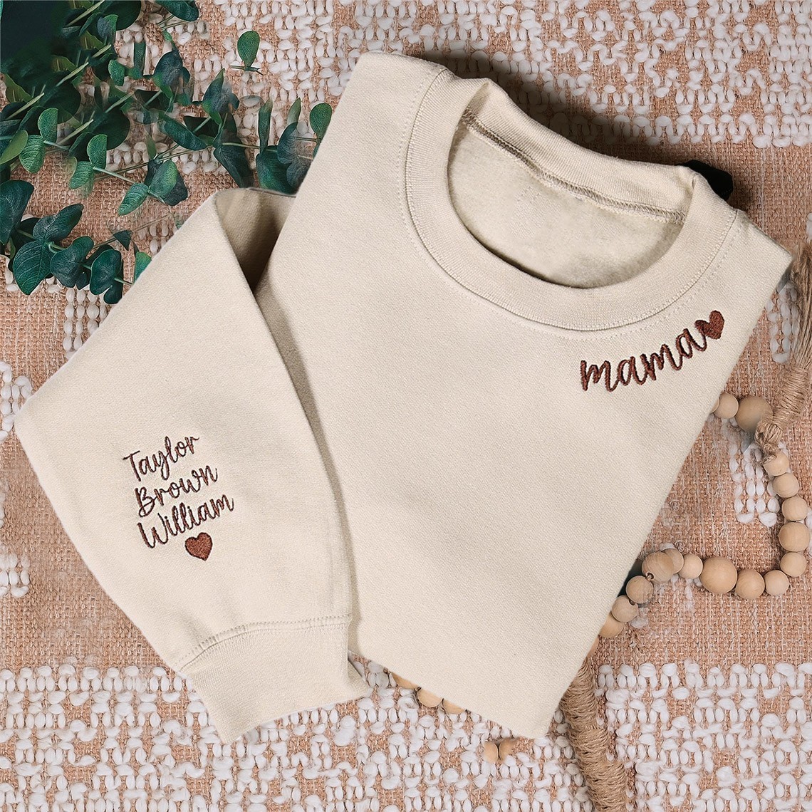 Custom Mama Embroidered Sweatshirt with Kids Names On Sleeve Unique Gifts for Mom Grandma Mother's Day Gift Ideas