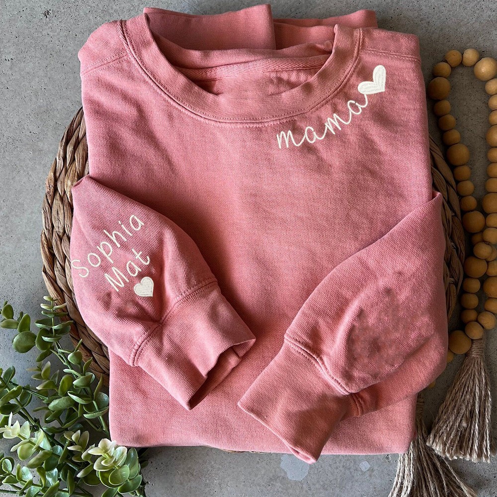 Custom Mama Neckline Embroidered Hoodie Sweatshirt With Kids Names Unique Mother's Day Gift Ideas