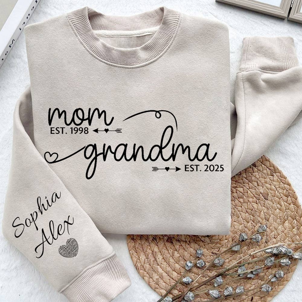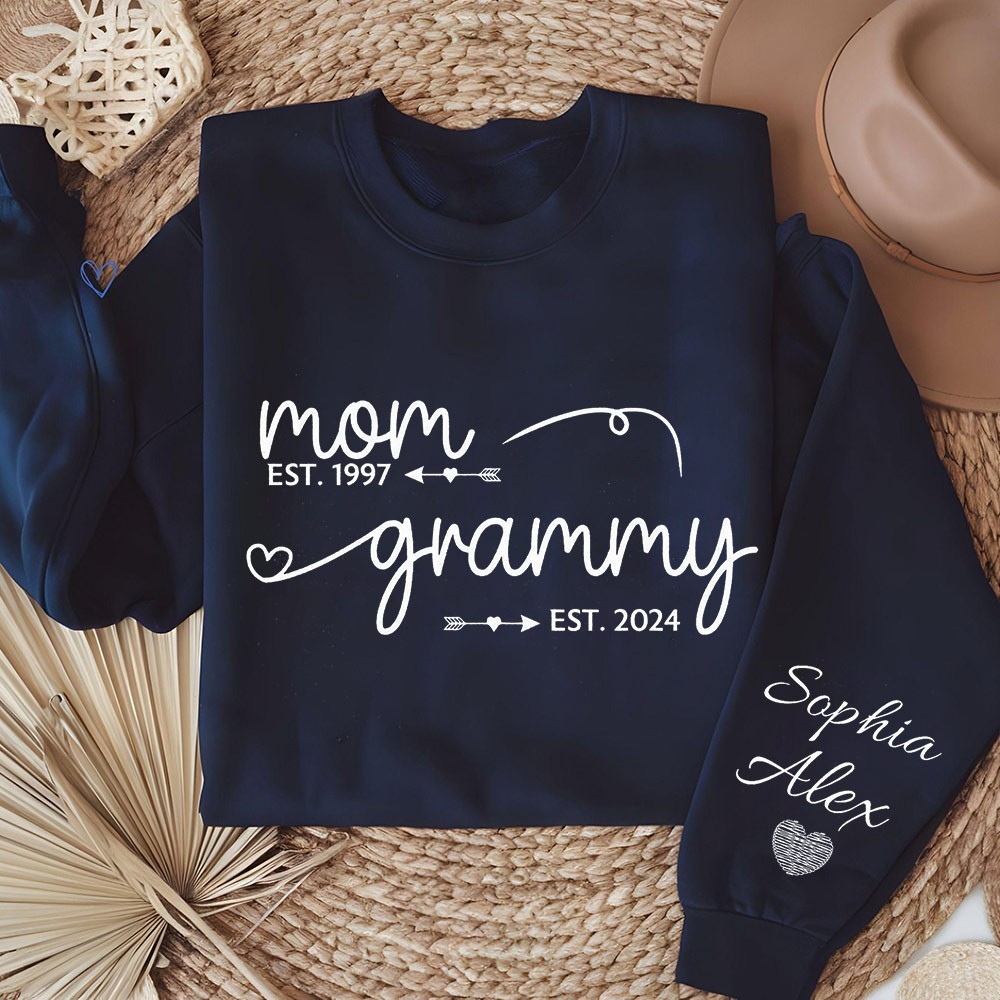 Custom Mom Grammy Est Year Sweatshirt with Kids Names on Sleeve Unique Gifts for Mom Grandma Motyher's Day Gift
