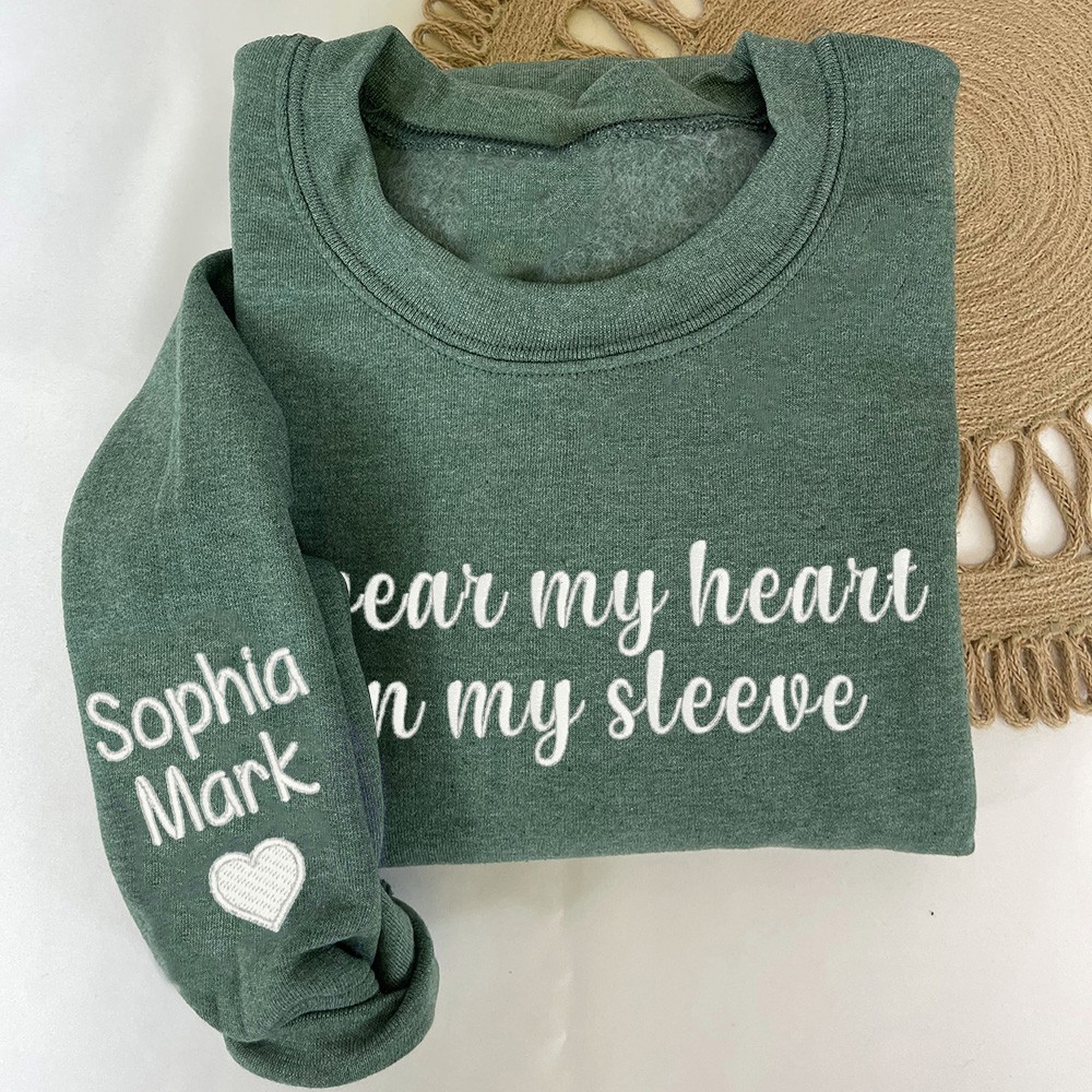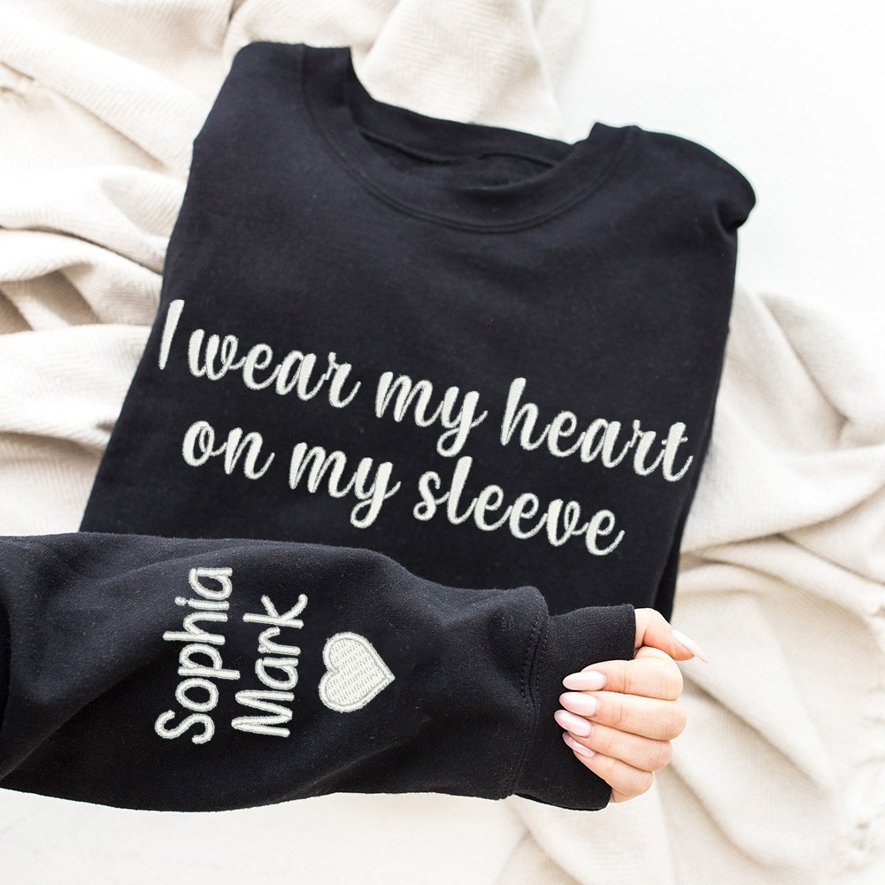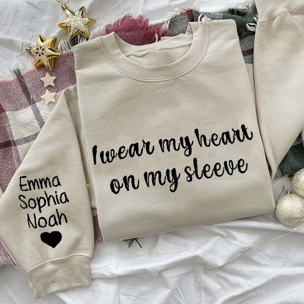 Personalized Embroidered I Wear My Heart on My Sleeve Sweatshirt Hoodie Gift For Mom Grandma