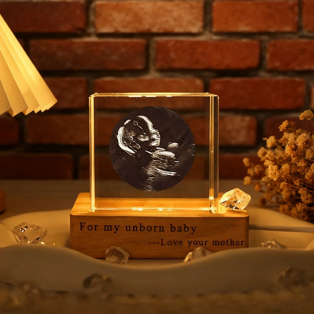 Personalized Heart 3D Crystal Baby Ultrasound Photo Portrait Night Light with Base New Mom Gift Christmas Gifts