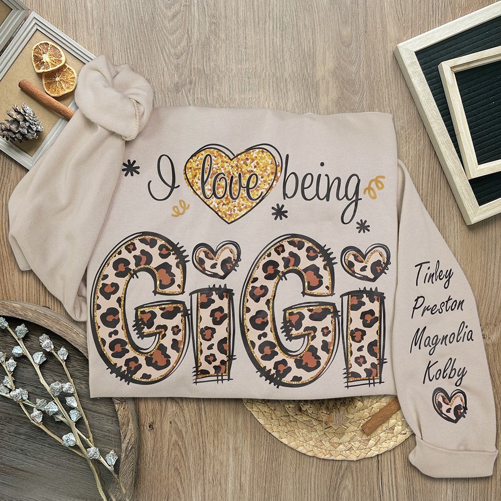 Personalized I Love Being Gigi Embroidered Sweatshirt Hoodie With Grandkids Names Christmas Gift Ideas