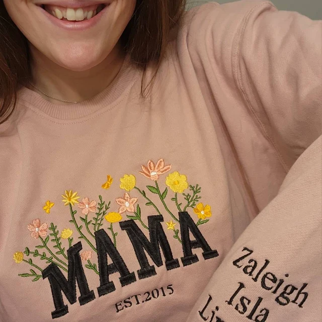 Personalized Mama Embroidered Sweatshirt Hoodie with Names On The Sleeve Mother's Day Gift