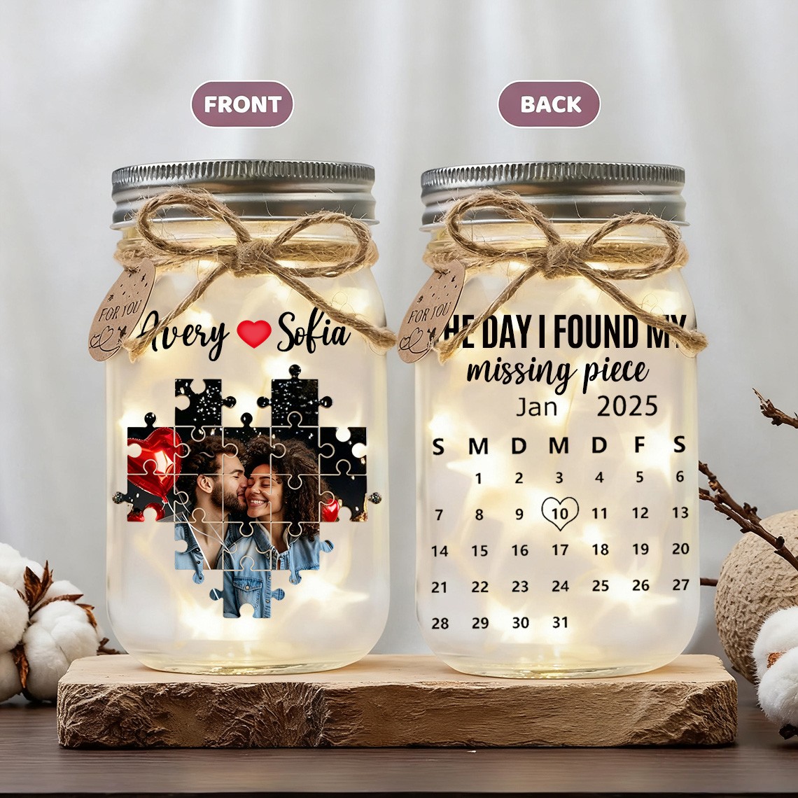 Personalized The Day I Found My Missing Piece Light Up Jars Keepsake Gift for Couple Anniversary Gift Valentine's Day Gifts