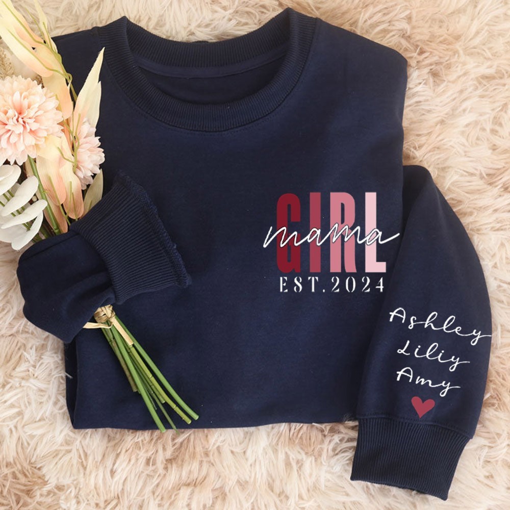 Custom Girl Mama Sweatshirt with Kids Names on Sleeve Mama Of Girls Hoodie New Mom Gift Birthday Gift for Mom Mother's Day Gifts