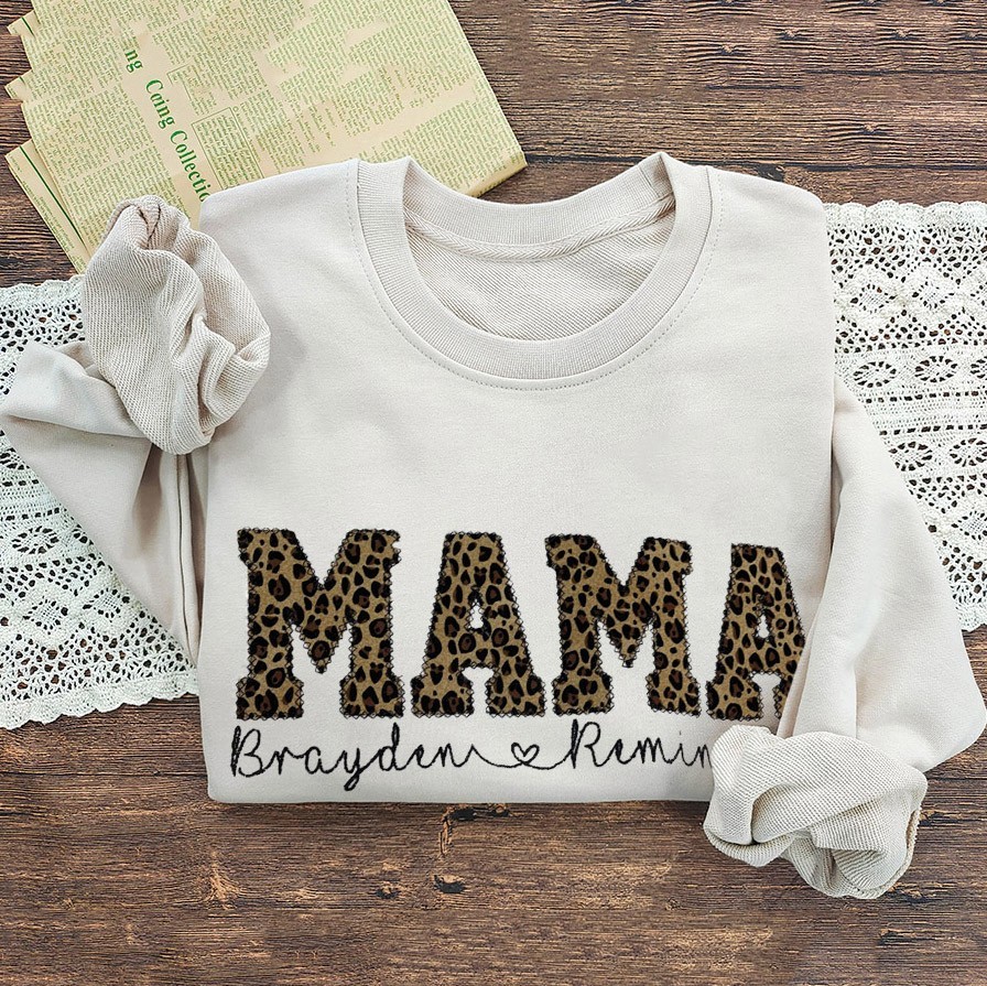 Custom Mama Leopard Print Embroidered Sweatshirt Hoodie Unique Gift For Mom Christmas Gift Ideas