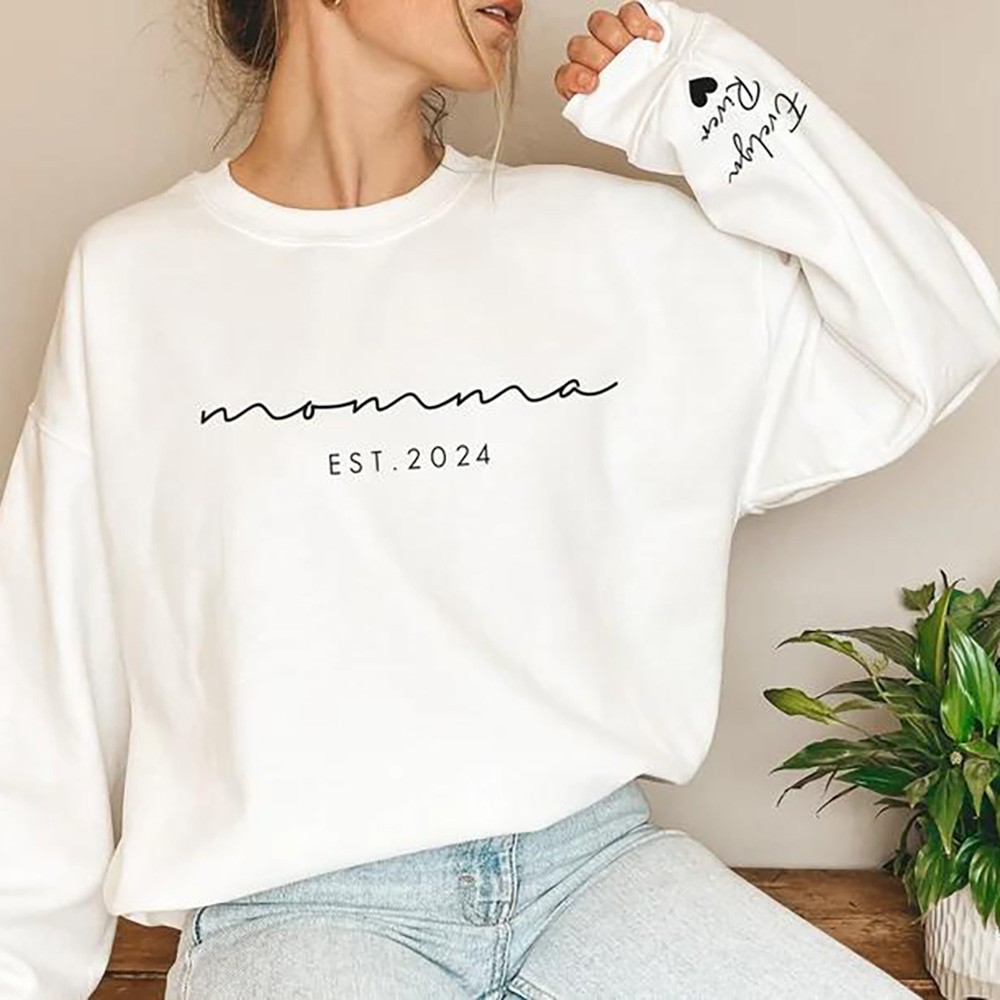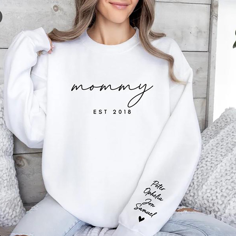 Custom Mama Sweatshirt Hoodie with Kids Names on Sleeve For Mother's Day Gift