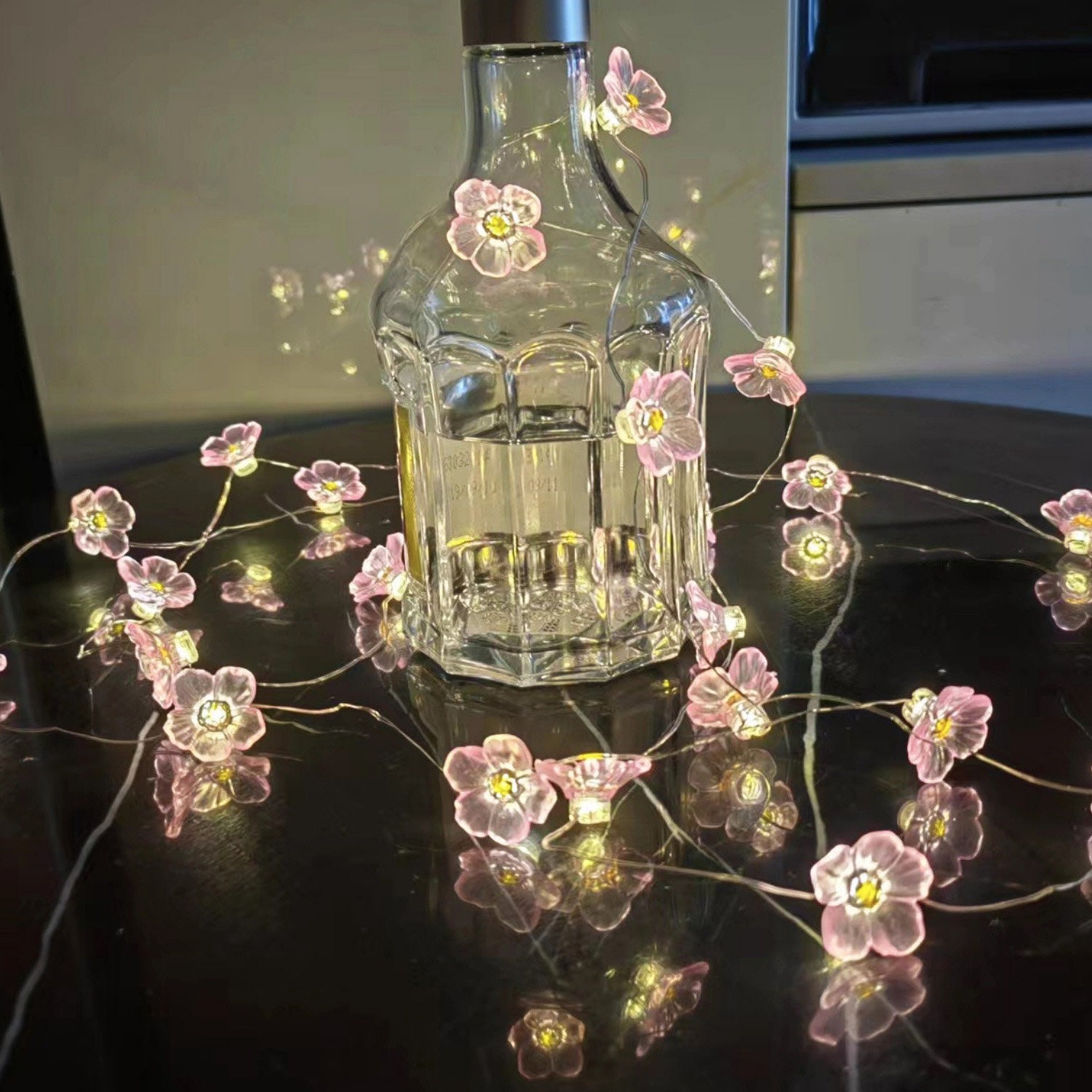 Handmade Pink Cherry Blossom Fairy Lights Copper String Lights for Bedroom Wedding and Christmas Gift Idea
