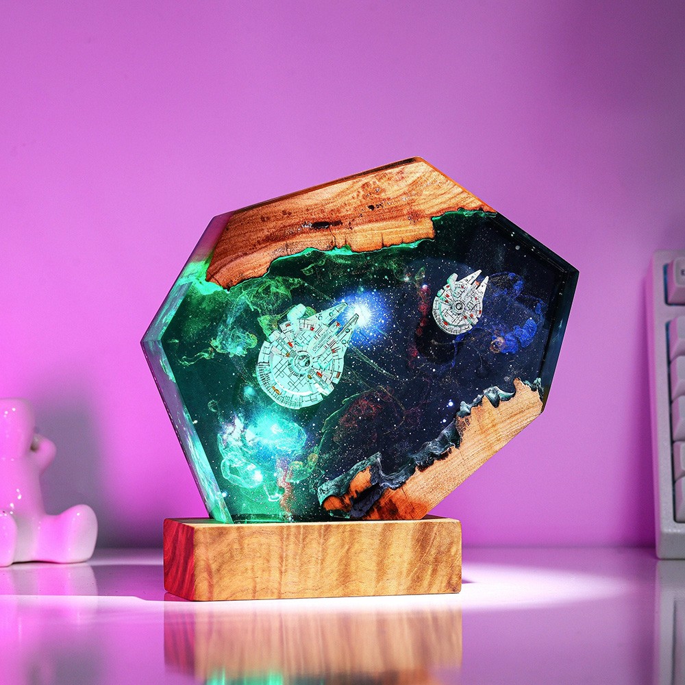 Veilleuse en résine et bois Space Galaxy Lampe époxy interstellaire