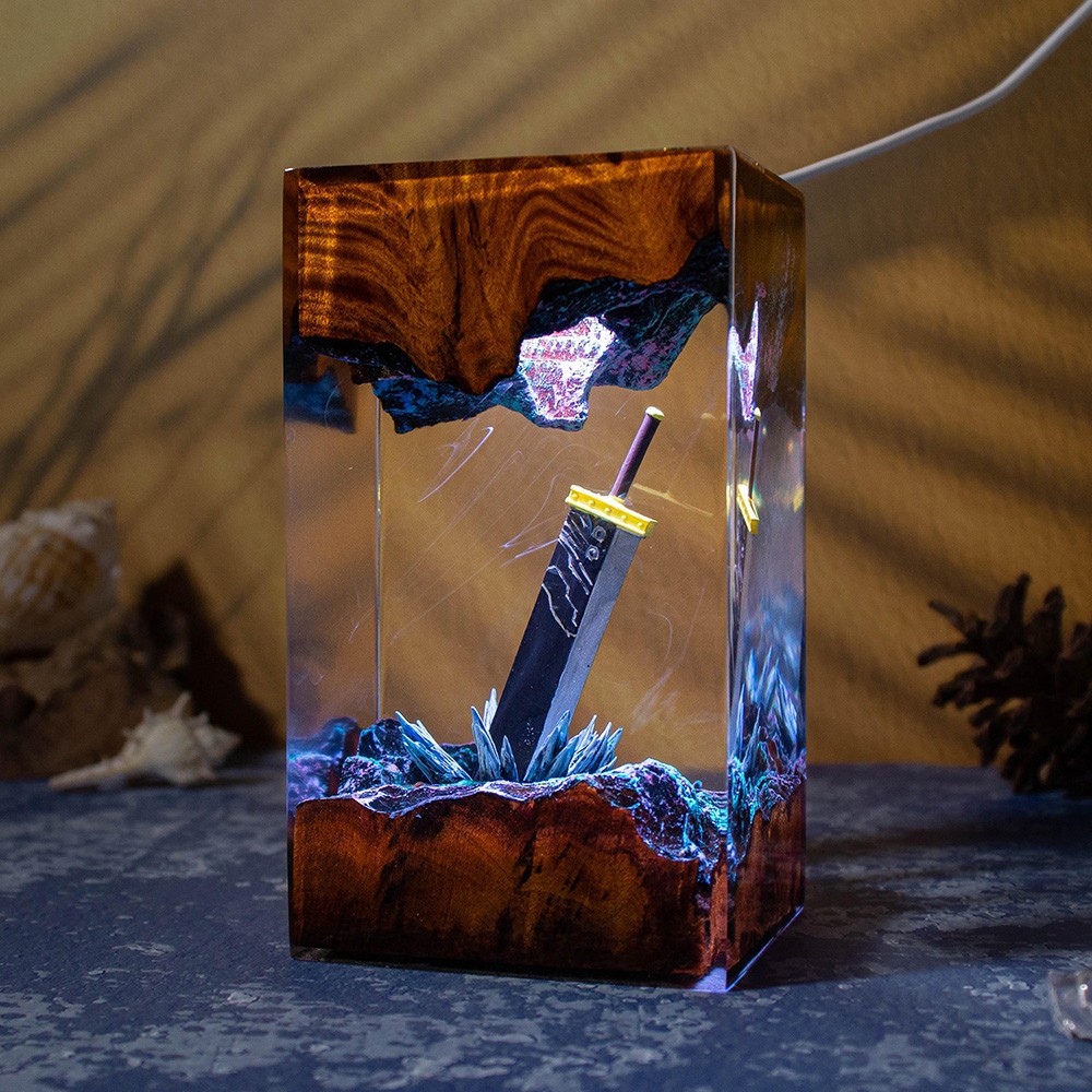 Lampe en bois et résine pour les amateurs de jeux, cadeau d'anniversaire, cadeau de Noël