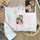 Custom Embroidered Mama Photo Portrait Hoodie with Kids Names on Sleeve Gifts for Mom Mother's Day Gift Ideas