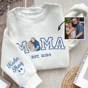 Mama Embroidered Photo Portrait Sweatshirt with Kids Names on Sleeve Custom Gifts for Mom Mother's Day Gift Ideas