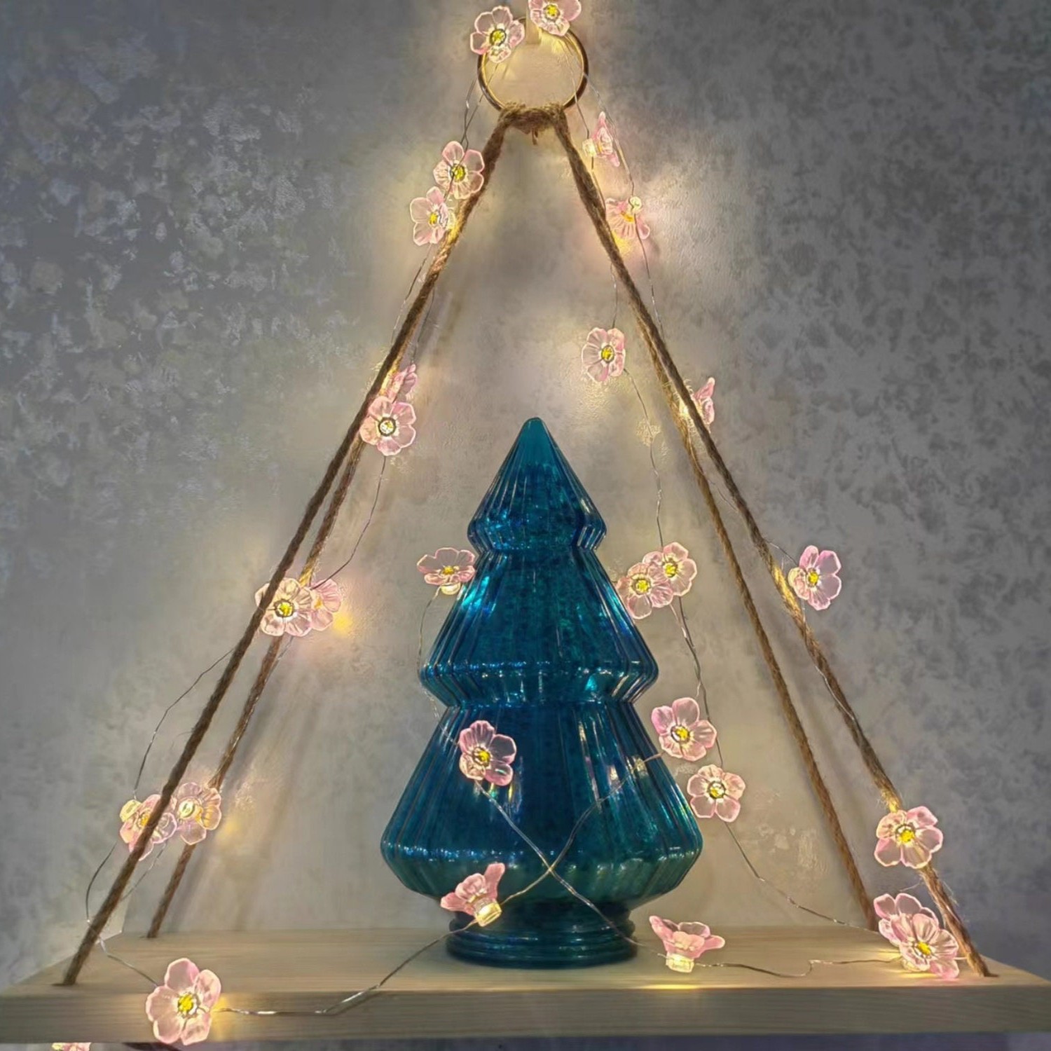 Handmade Pink Cherry Blossom Fairy Lights Copper String Lights for Bedroom Wedding and Christmas Gift Idea