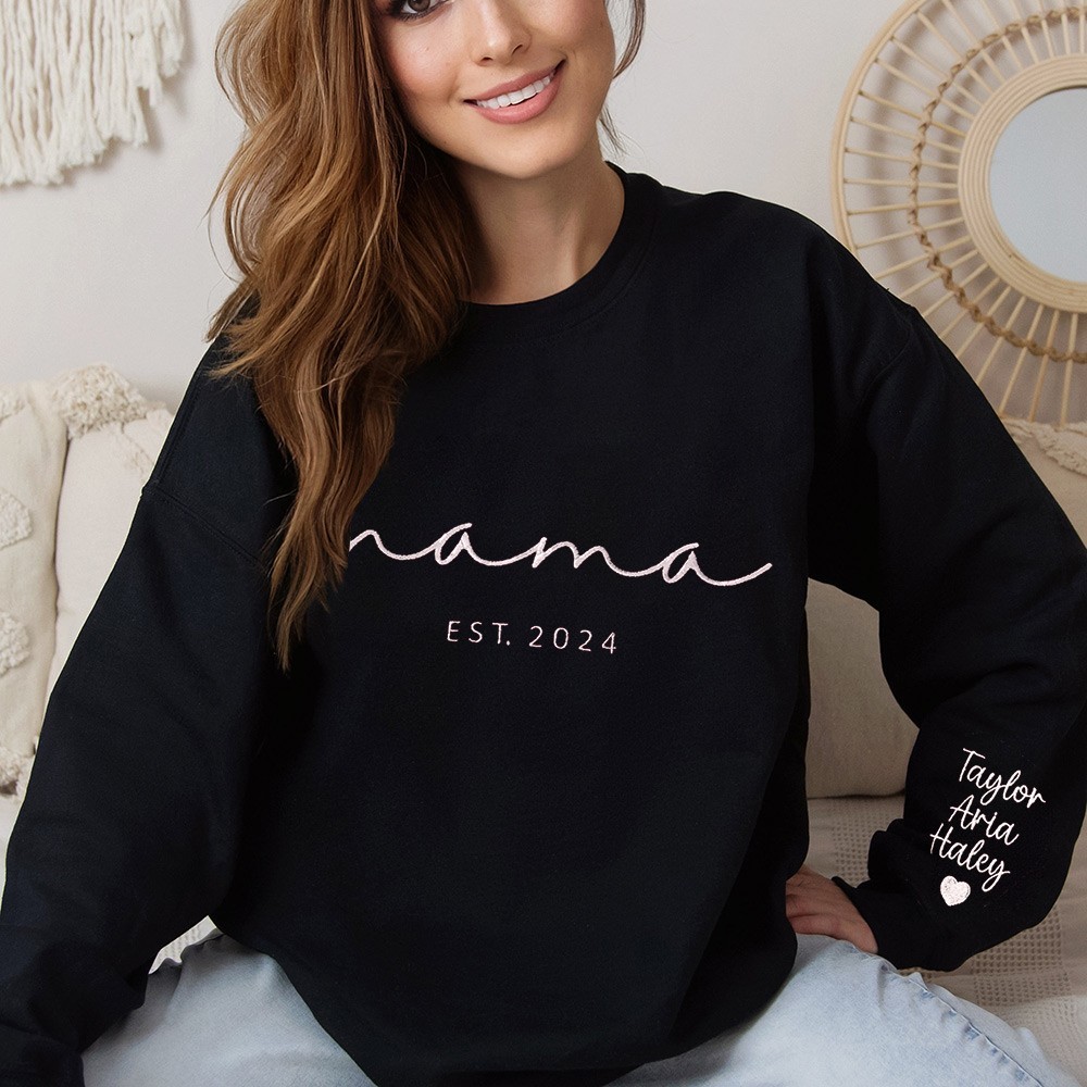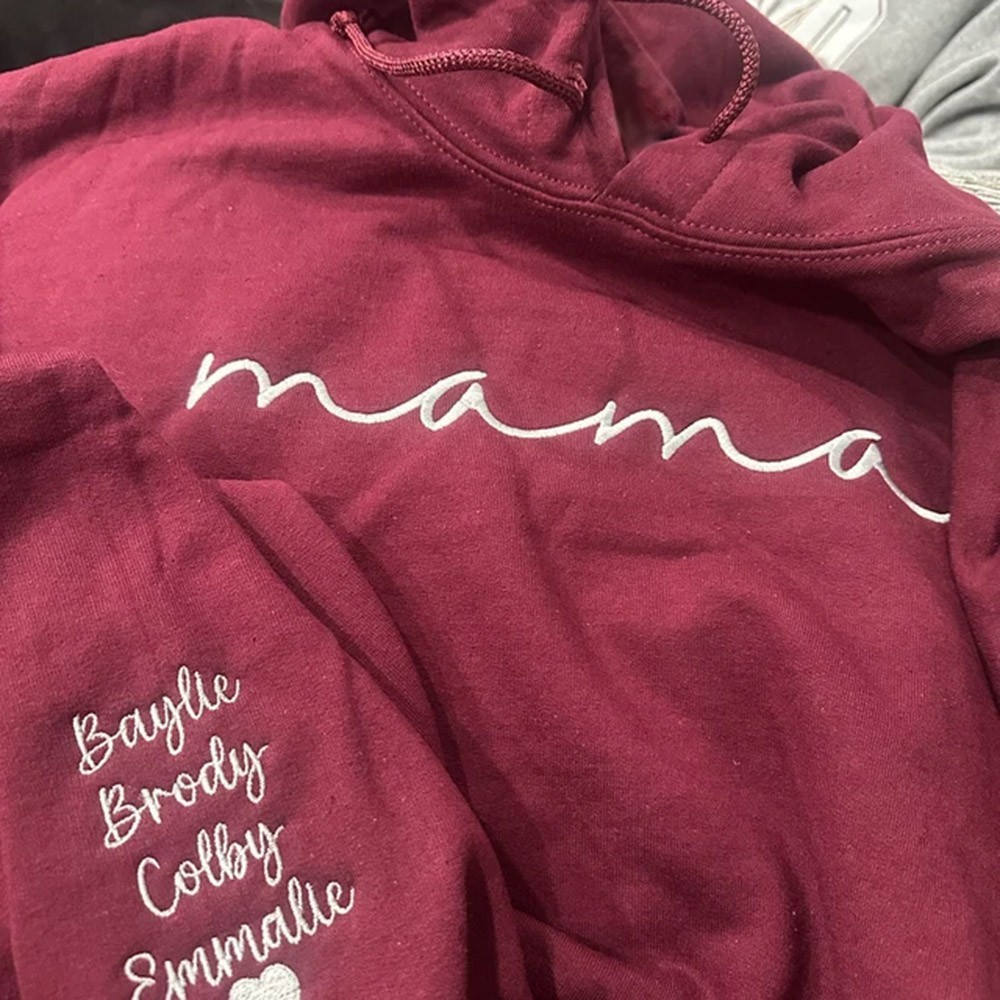 Custom Mama Embroidered Sweatshirt Hoodie Heartful Gift For Mom Grandma Mother's Day Gift Ideas