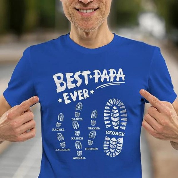 Personalized Best Pops Papa Ever Big and Small Footprints T-shirt Sweatshirt Hoodie with Kids Names Father's Day Gift for Dad Grandpa