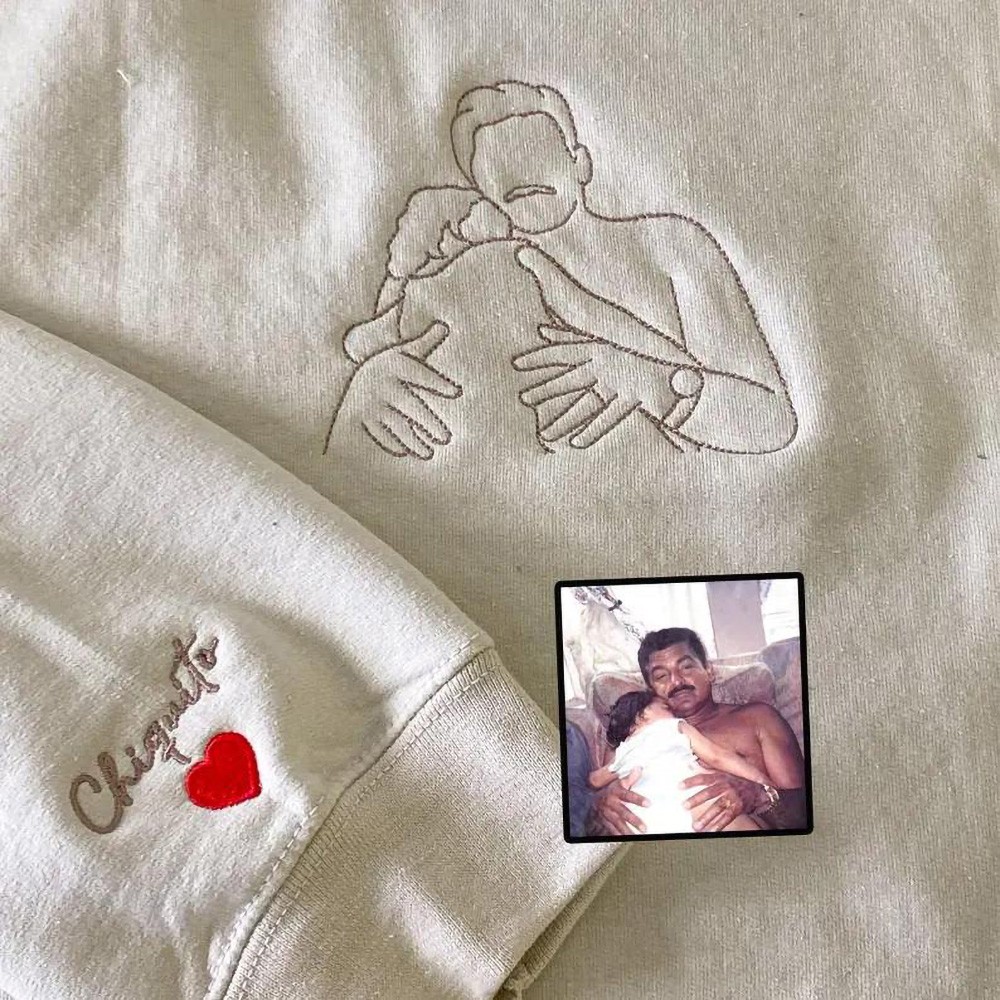 Personalized Dad Embroidered Photo Portrait Sweatshirt with Kids Names on Sleeve Unique Gifts for Dad Father's Day Gift