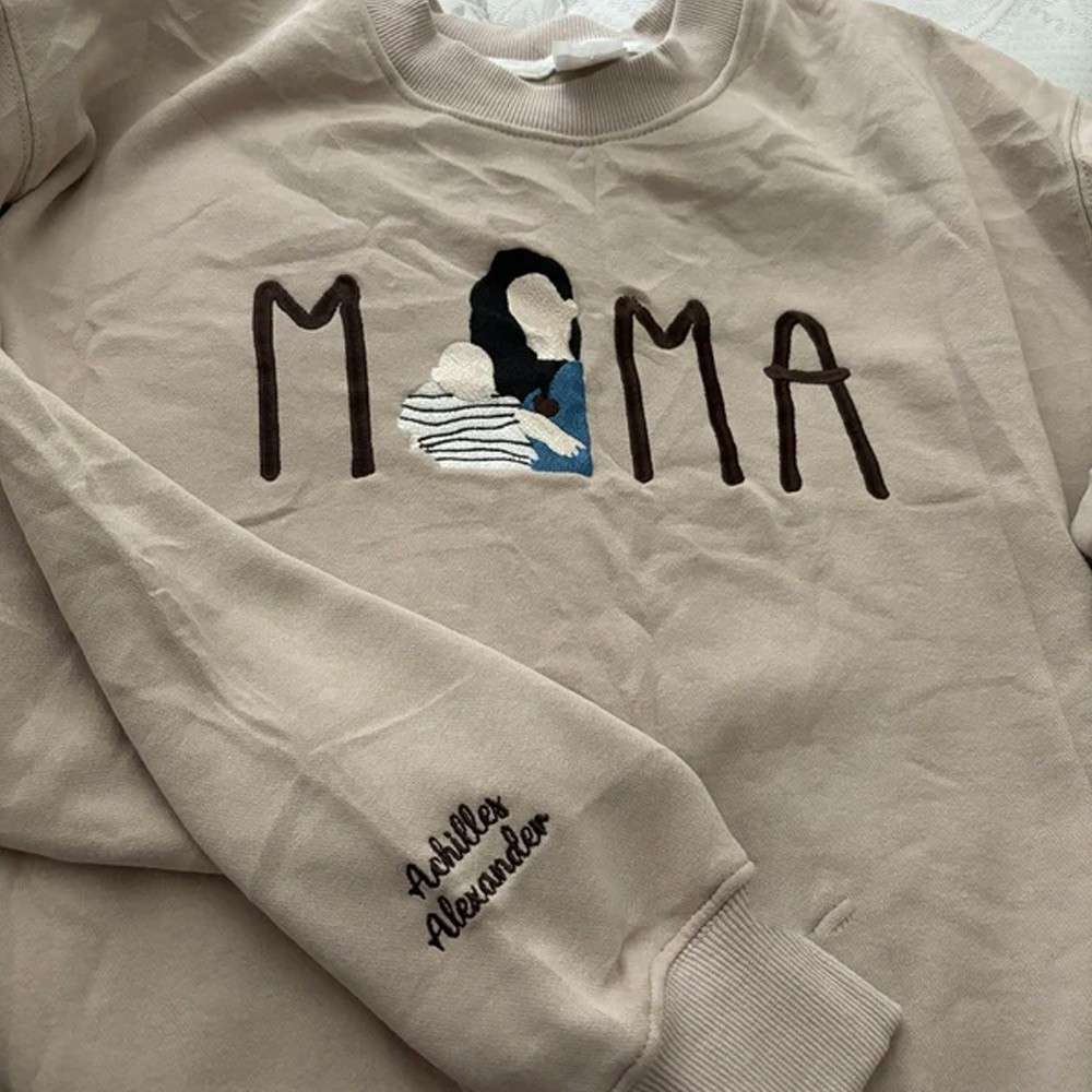 Personalized Mama Sweatshirt with Embroidered Photo Portrait Unique Gift for Mom Birthday Gift Ideas Mother's Day Gifts