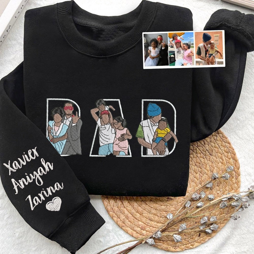 Personalized Photo Embroidered Sweatshirt Hoodie Unique Gift for Dad Father's Day Gift Ideas