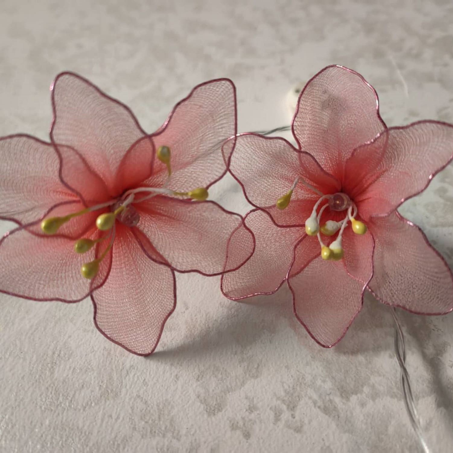 Pink Lily Fairy Lights Handmade Romantic String Lights for Bedroom Wedding and Christmas Gift Idea