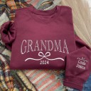Custom Grandma Embroidered Sweatshirt with Kids Names and Bow on Sleeve Keepsake Gifts for Grandma Mom Mother's Day Gift