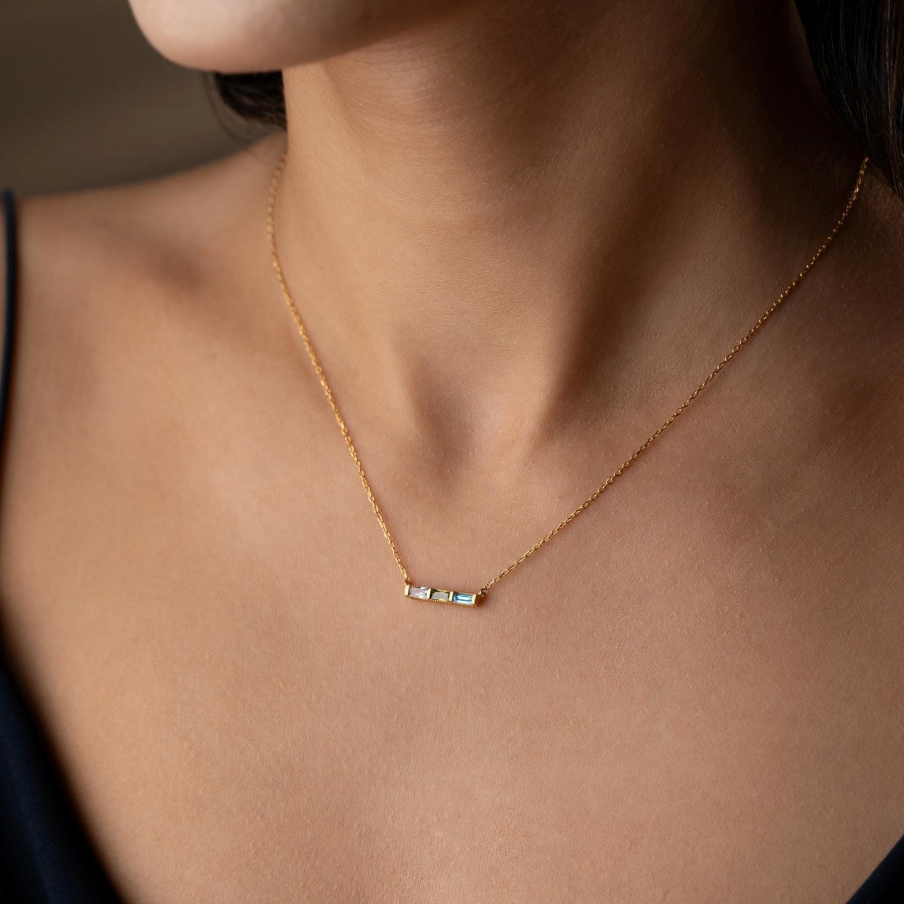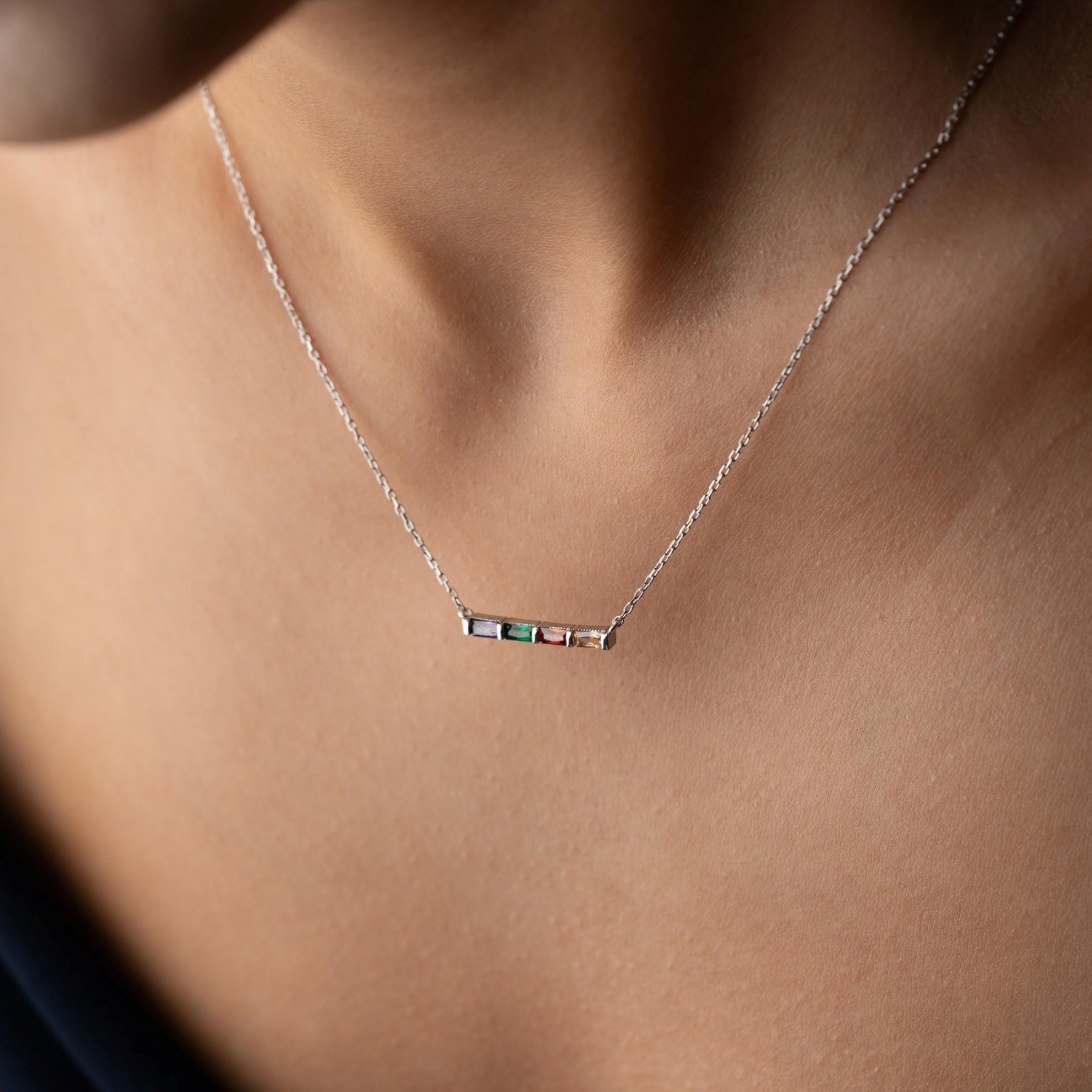 Personalized Baguette Birthstone Necklace Gift for Mom Grandma