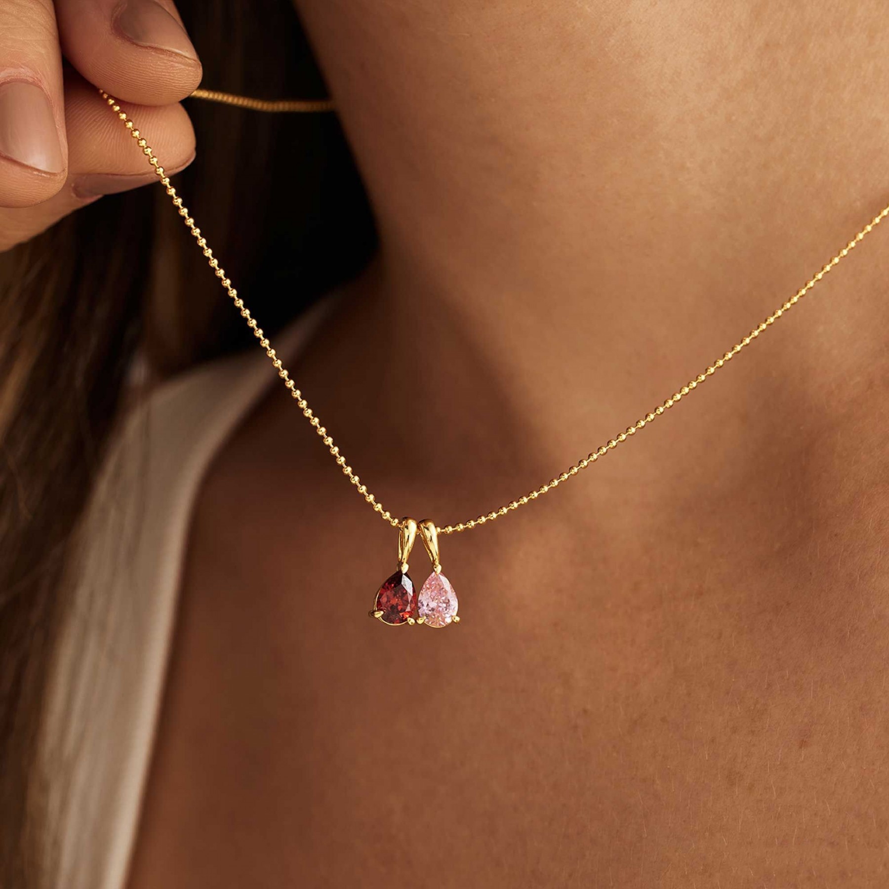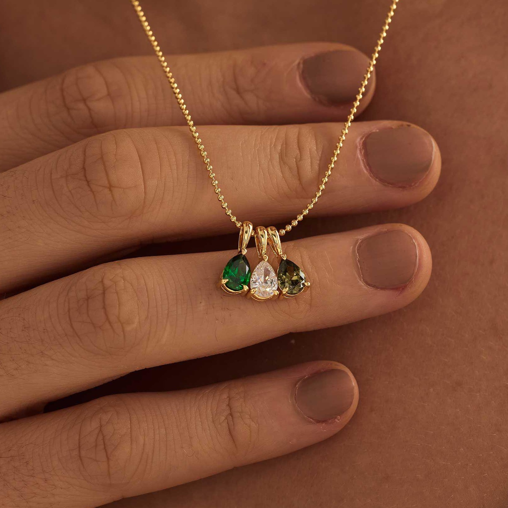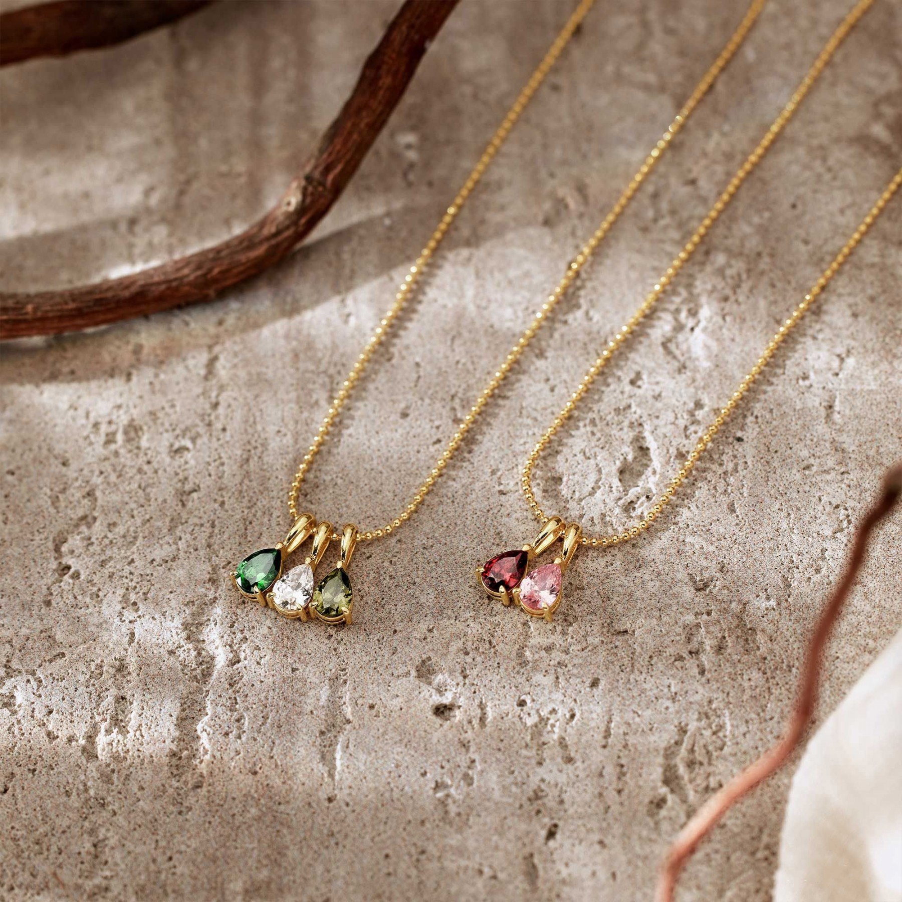 Personalized Birthstone Necklace Custom Teardrop Pendant Gift for Mom Grandma