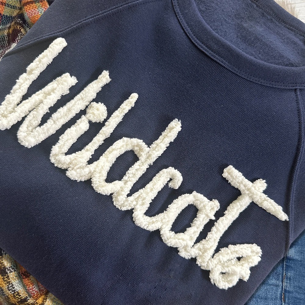 Personalized Chenille Embroidered Team Sport Sweatshirt with Game Day Fuzzy Letter Unique Gift for Game Day