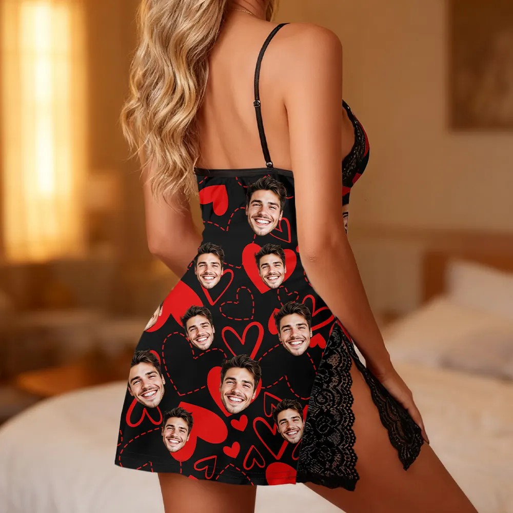 Personalized Lace Nightgown with Your Face Unique Valentine's Day Gift for Her